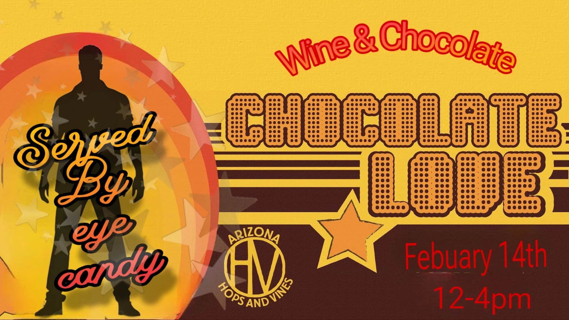 Six delicious wines, paired with six sexy chocolates. Served by special servers🥰 includes a souvenir glass. On February 14th from 12-4pm